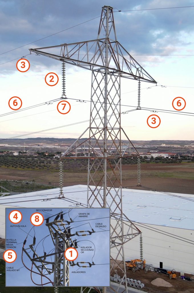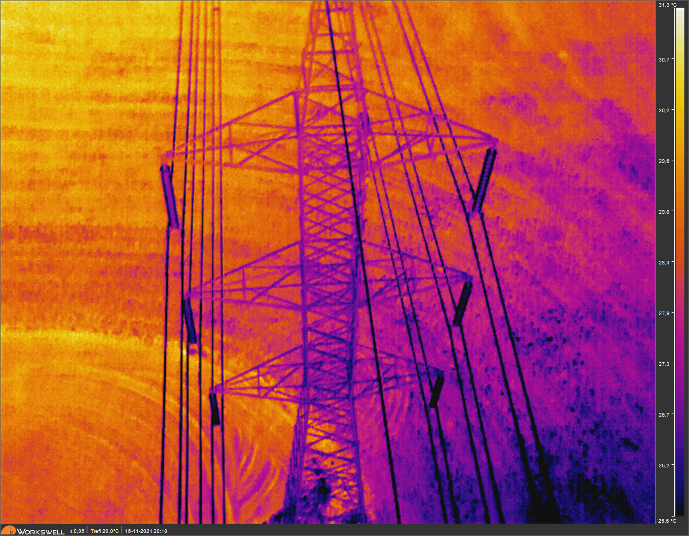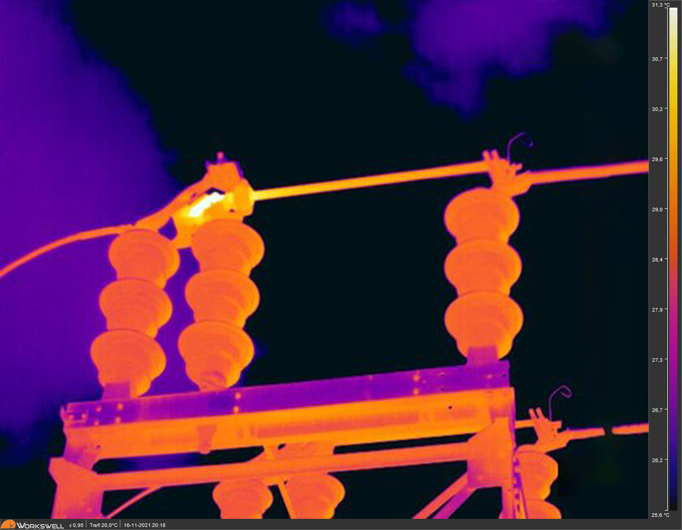 Las mismas partes que inspeccionamos visualmente en una torre de Alta y Media Tensión, pero que también son susceptibles de verse afectadas por un mal comportamiento térmico que pudieran dar lugar a funcionamiento defectuoso, con los riesgos asociados al mismo.