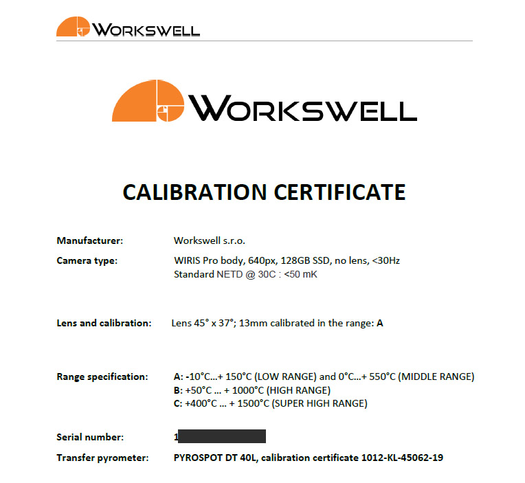 Una cámara IR radiométrica debe venir con su certificado de calibración para justificar que las temperaturas medidas están dentro de la precisión de la cámara o el error absoluto que tiene a la hora de hacer una medición de la temperatura de un objeto. Éste se puede encontrar en las especificaciones de la cámara y que debería de ser ±1-2% de la lectura, o ±1-2 ºC.